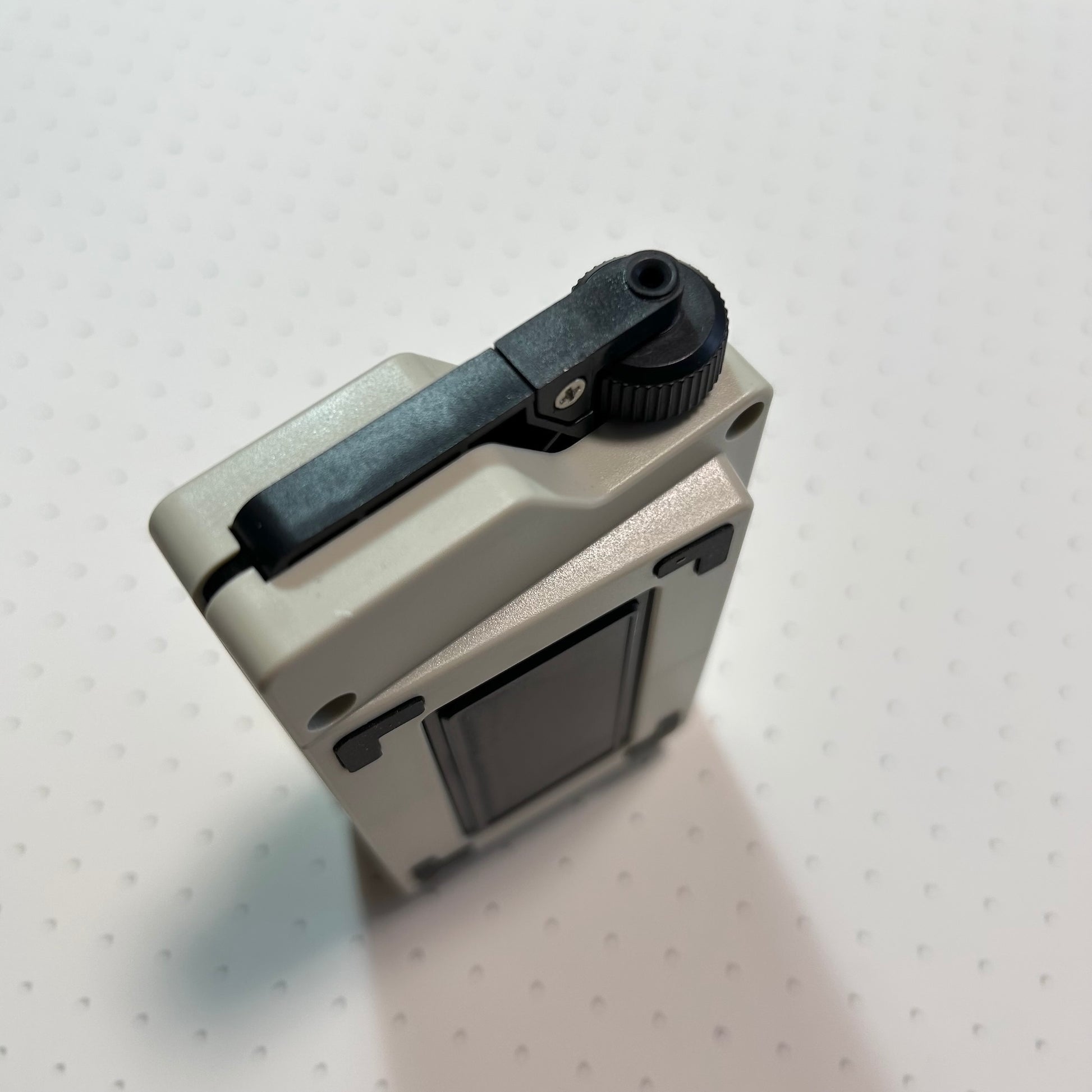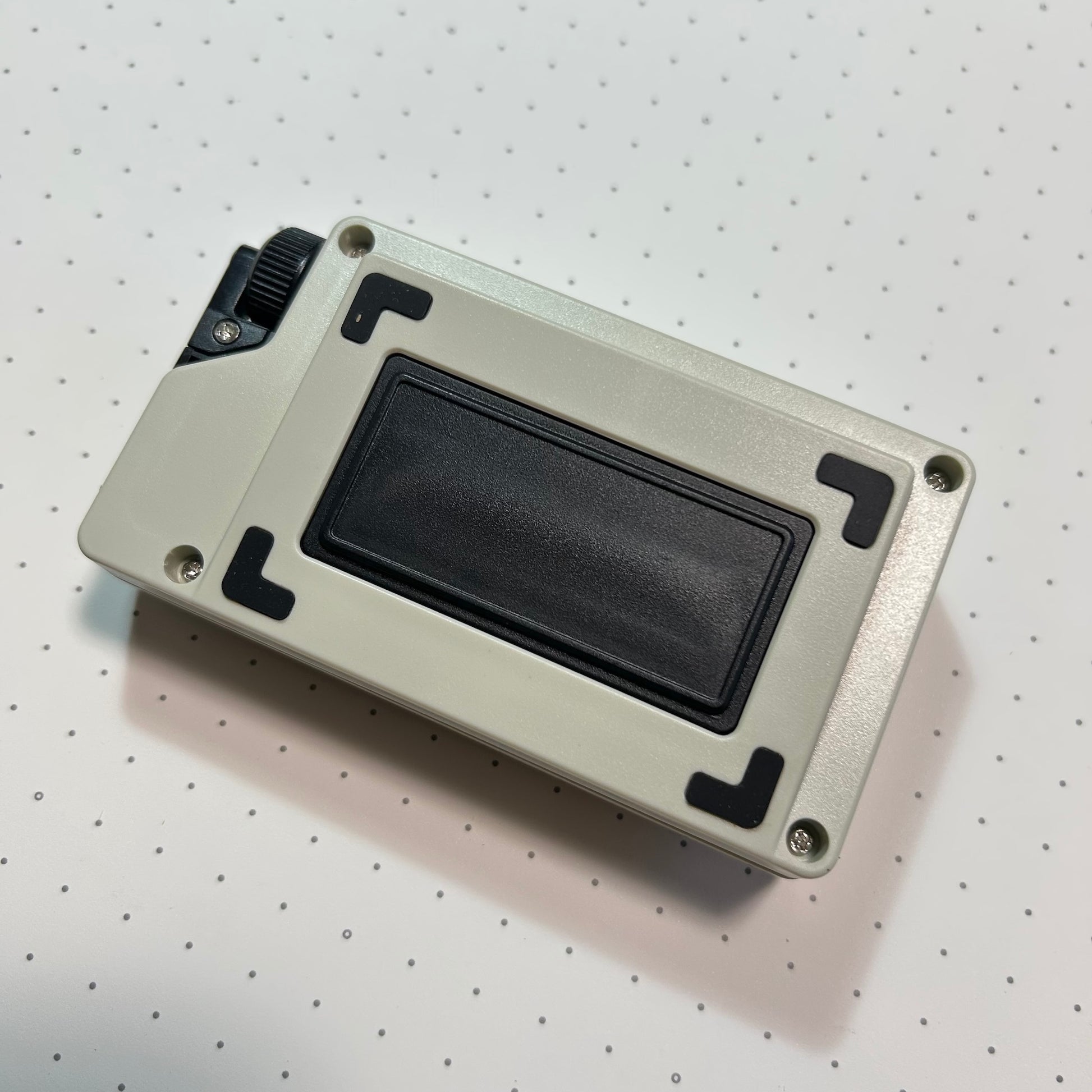 樹脂製のケースに、クリッキーのキースイッチとキーキャップがついています。キースイッチは脱着可能です。右上についているホイールはくるくる回ります。