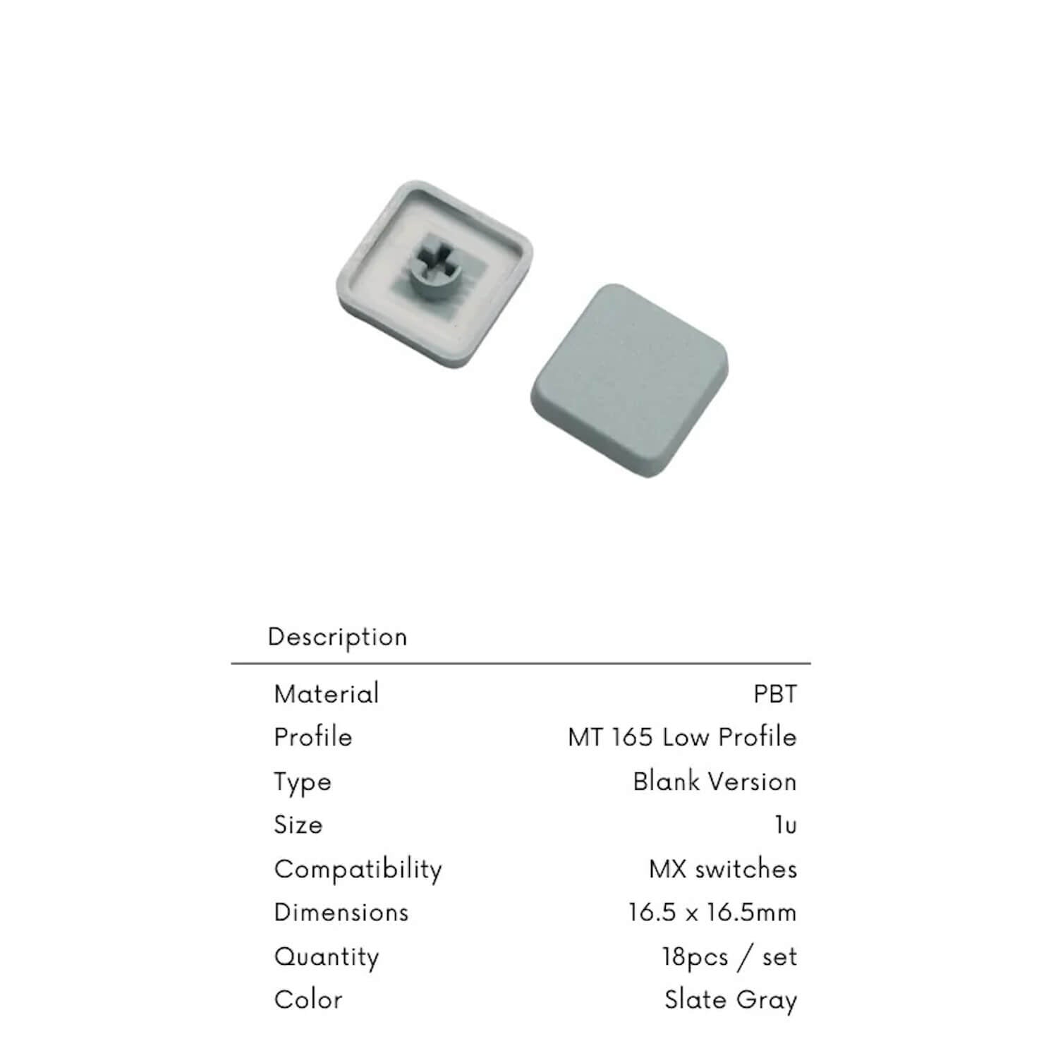 MT 165 (Tai-Hao MT 165) Low Profile Keycaps (Blank) PBT 1pcs